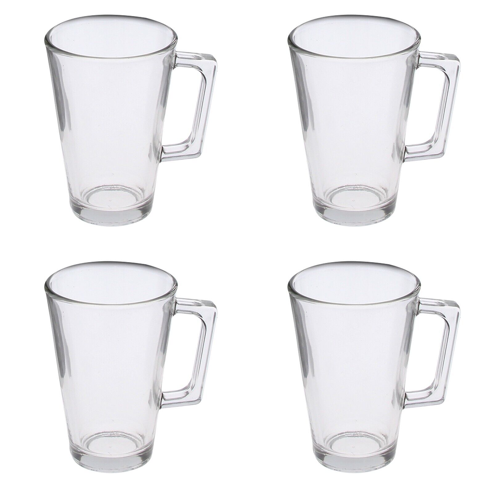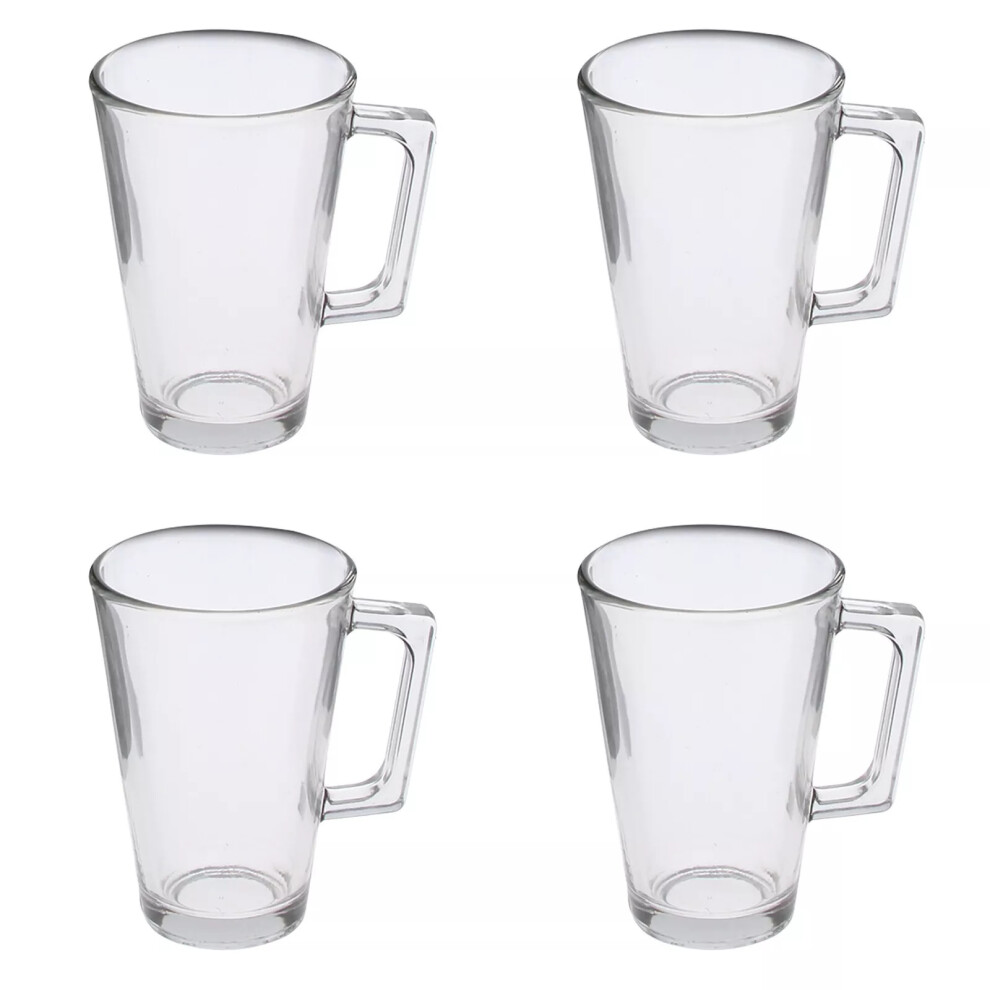 Set of 4 Clear Glass Tall Latte Glasses 300ml Dishwasher Safe Tea Coffee Mugs