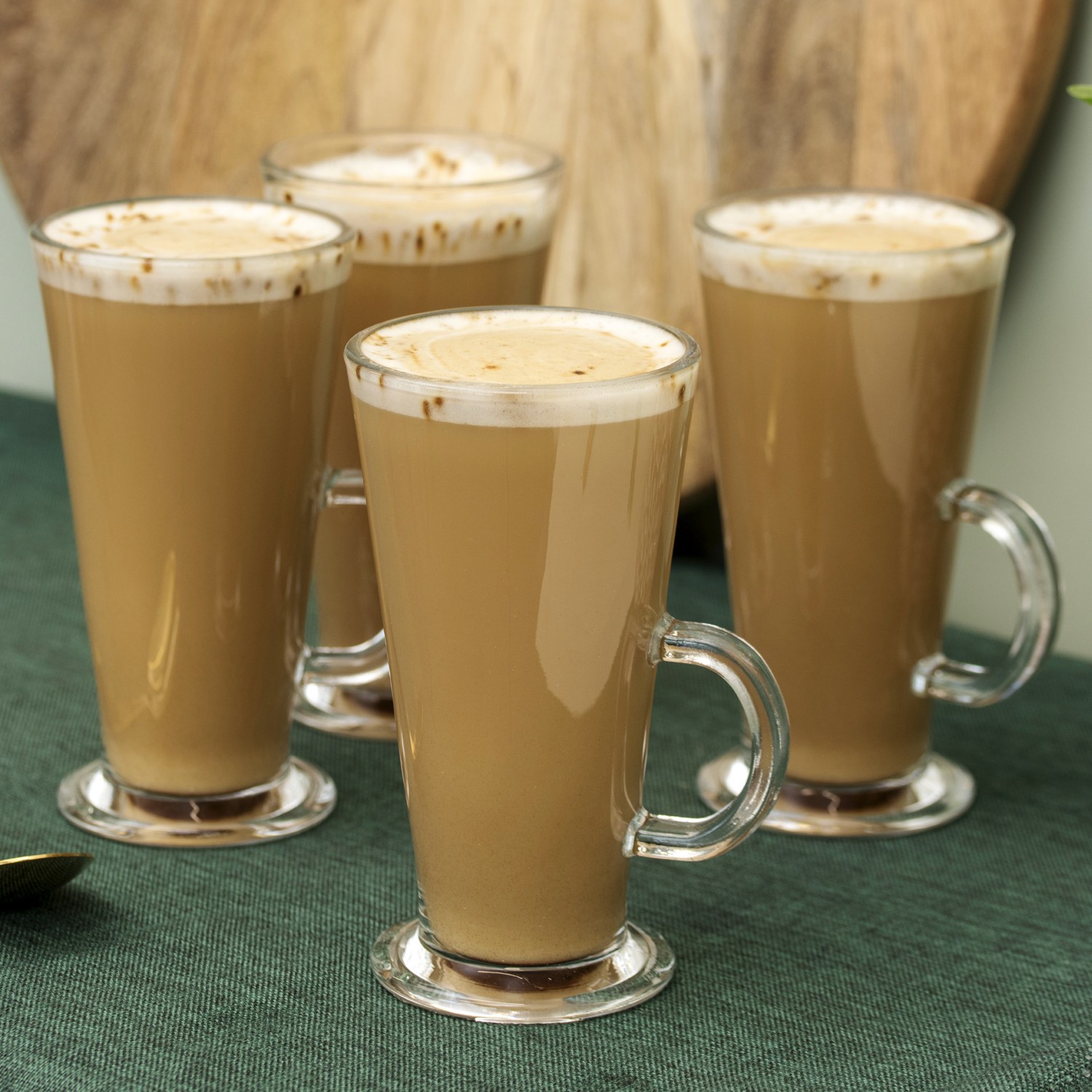 Premier Housewares Curved Handle Set Of Four Latte Glasses | Elegant Tapered Design Coffee Cups Glasses | Sturdy And Leak Proof Glass Coffee Mugs | Versatile Latte Mugs