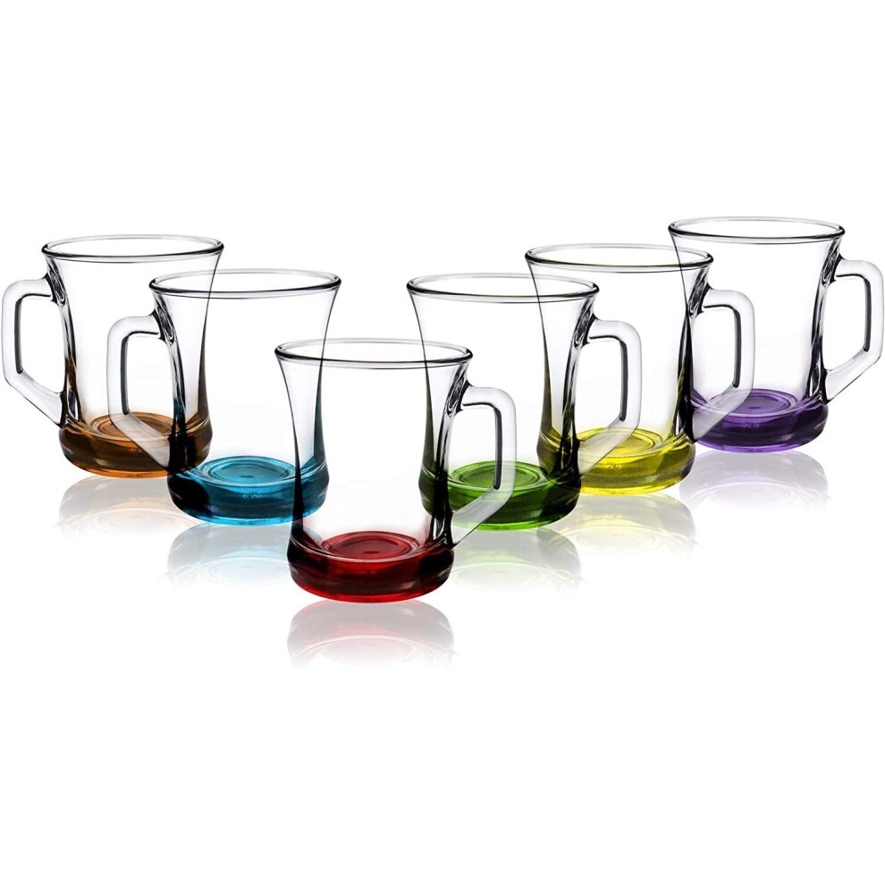 Lav (Set of 6) Hot Drink Mugs/Coloured Base Tea Coffee Latte Cappuccino Glasses/Glass Drink Cups /(225 cc / 7.5 oz)