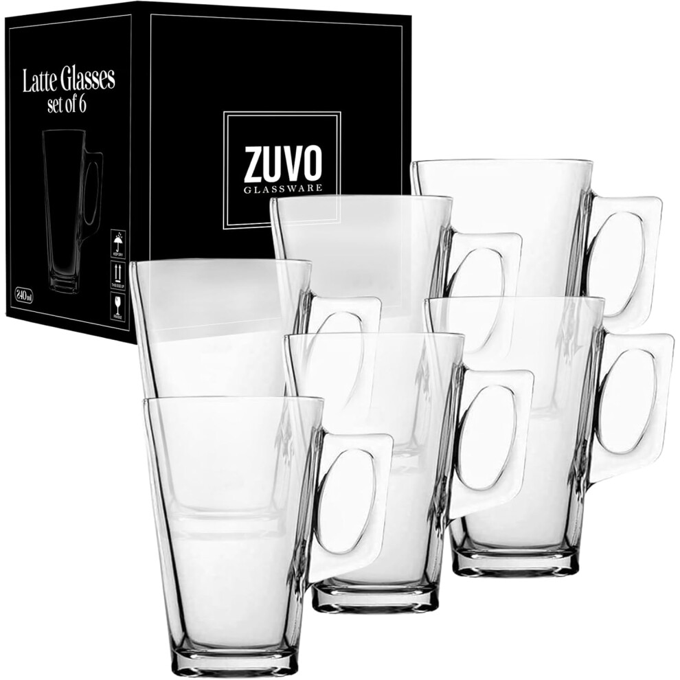 Zuvo Latte Glasses Set of 6 240ml Heat Resistant Glass Cups for Coffee Latte and Hot Chocolate