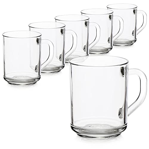 ANSIO Large Latte Glass Coffee Cups - 375ml (12.6 oz) -Pack of 6 Latte Glasses - Compatible with Tassimo Machine