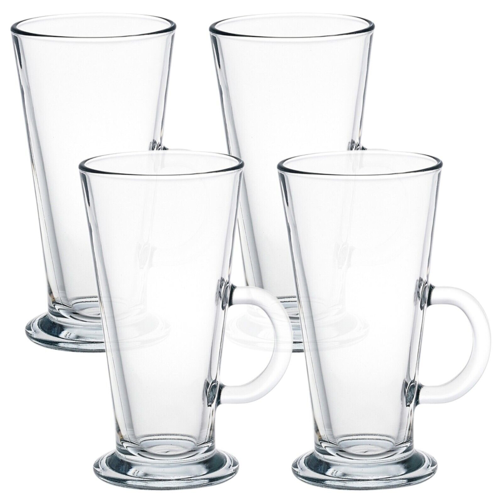 Set of 4 Modern Tall Latte Glasses 260ml Tea Irish Coffee Clear Glass Mugs Cups