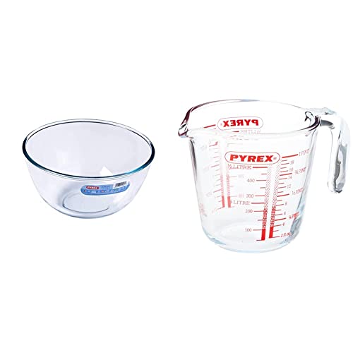 Pyrex Glass Bowl 3.0L, pack of 1 & Measuring Jug 500ml | Capacity 568ml / 20 ounce | P586