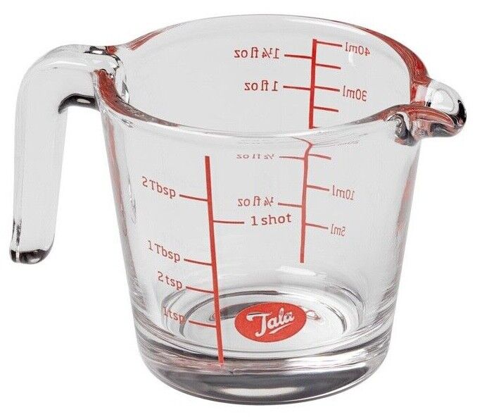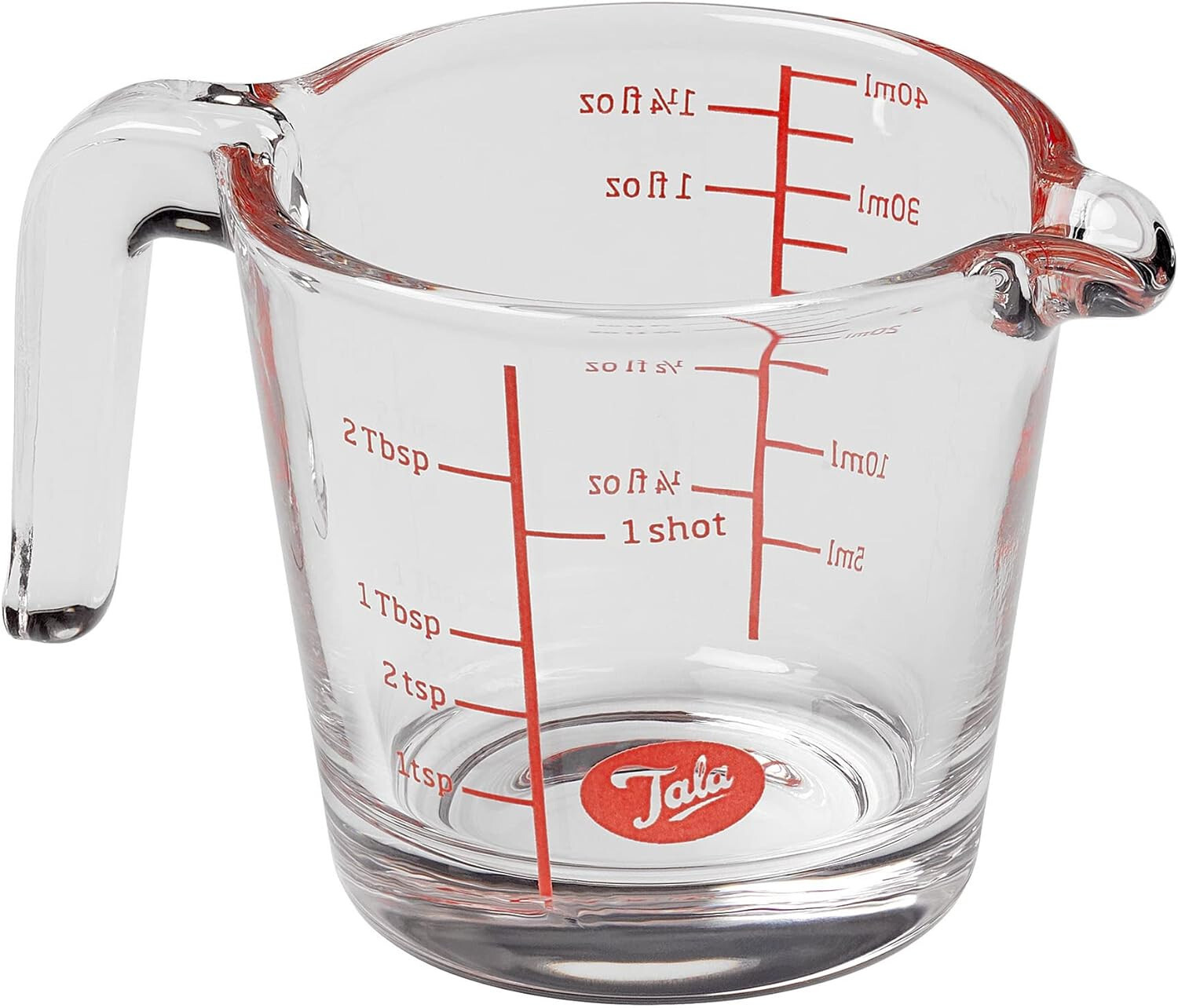 Tala Glass Midi Measuring Cup, 100ml, Measures in ml, Tbsp, TSP & Fl oz, Small Glass Measuring Jug for Liquids & Dry Goods, Easy-to-Read, Dishwasher Safe