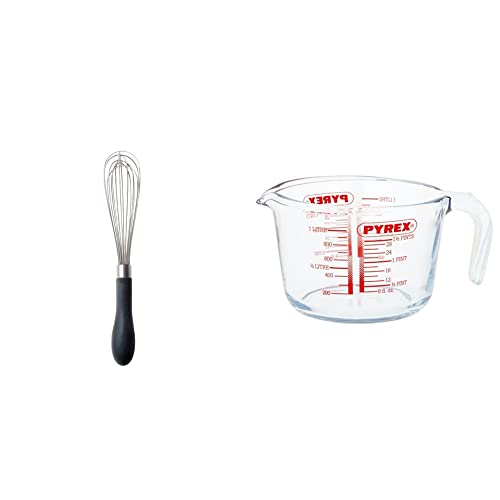 OXO Good Grips 23cm Whisk & Pyrex Glass Measuring Jug, Transparent, 1 Litre