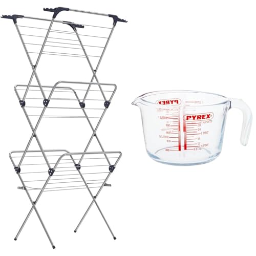 SONGMICS Foldable Clothes Airer, Clothes Drying Rack, Compact Clothes Horse Dryer, Laundry Rack & Pyrex Glass Measuring Jug, Transparent, 1 Litre