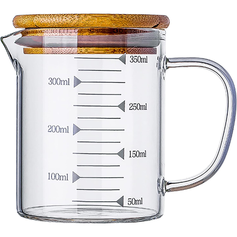 Glass Measuring Jug , Kitchen Lab Clear Easy to Read Measurements, Microwave Safe, Cook with Accuracy, Ergonomic Handle Design,350ml