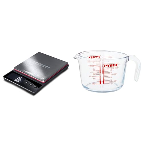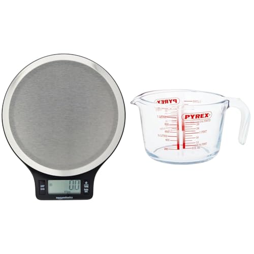 Amazon Basics Digital Kitchen Scale with LCD Display (Batteries Included) & Pyrex Glass Measuring Jug, Transparent, 1 Litre