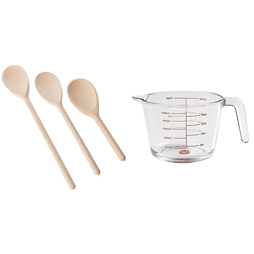 Tala 61A30014 Wooden Spoon Set, Multi-Colour, Regular + Tala 1 Litre Glass Measuring Jug