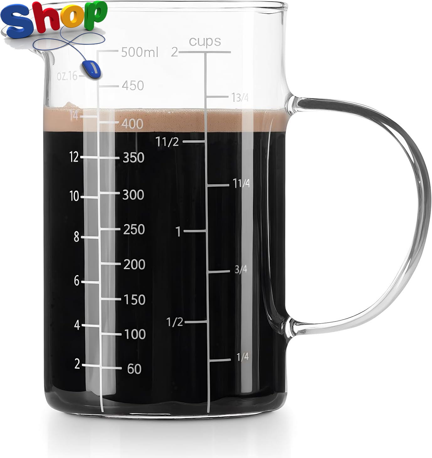 Measuring Cup Glass 500 ml Measuring Jug Multi-Purpose Measuring Mug for Liquid, 2-Cup