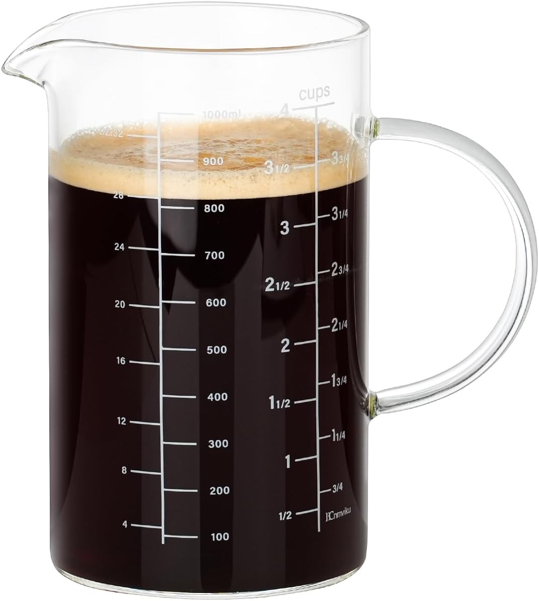 Glass Measuring Jug,1l Glass Measuring Cup V Shaped Nozzle Clear Scale Comfortable Grip Borosilicate Glass Coffee Cups1000ml