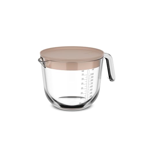 Mepal - Glass Measuring Jug with Lid Chef it - Easy-to-read engraved Scale - Microwave & Oven Safe (Without Lid) - Dishwasher Safe - 1000 ml - Chalk