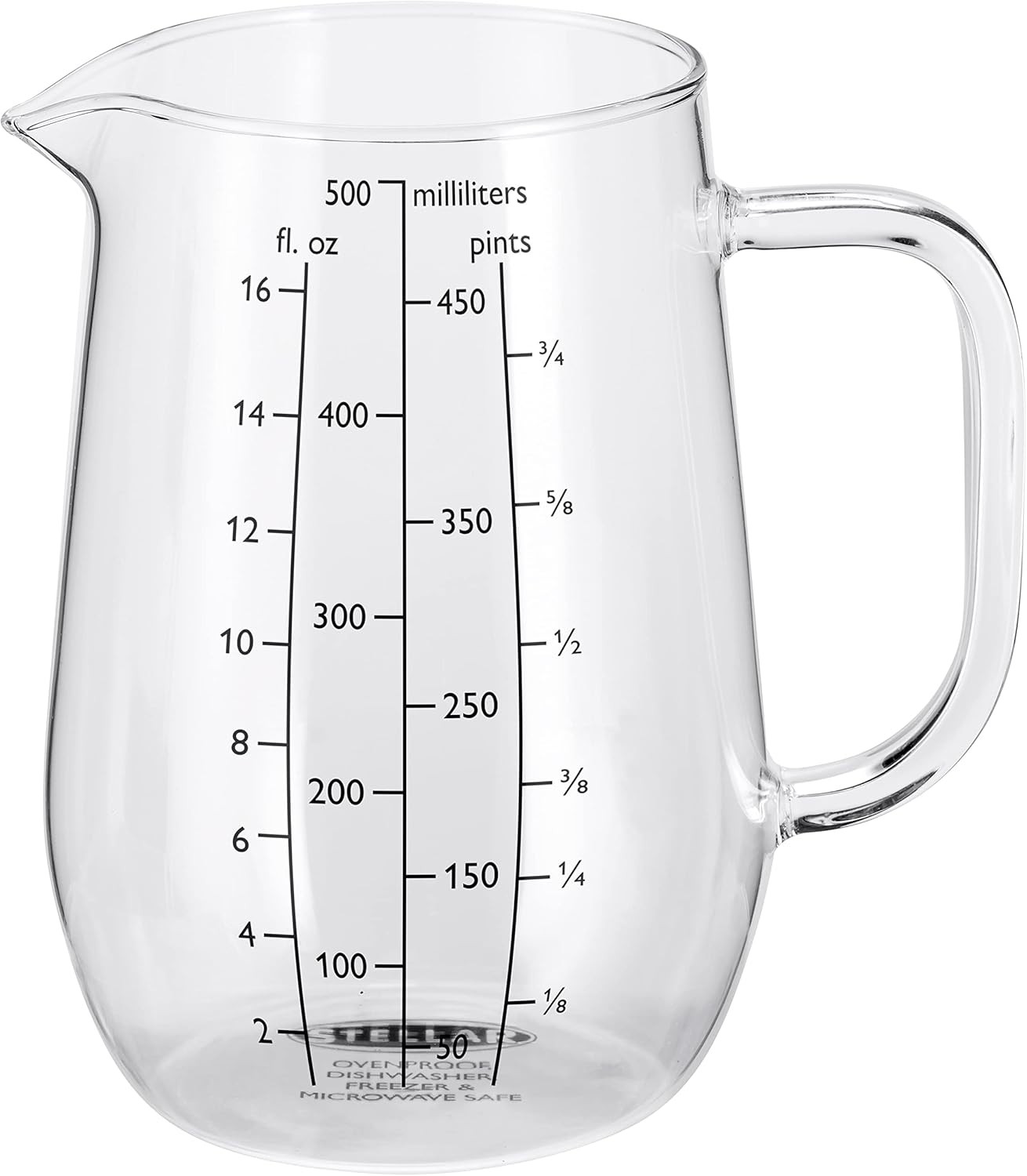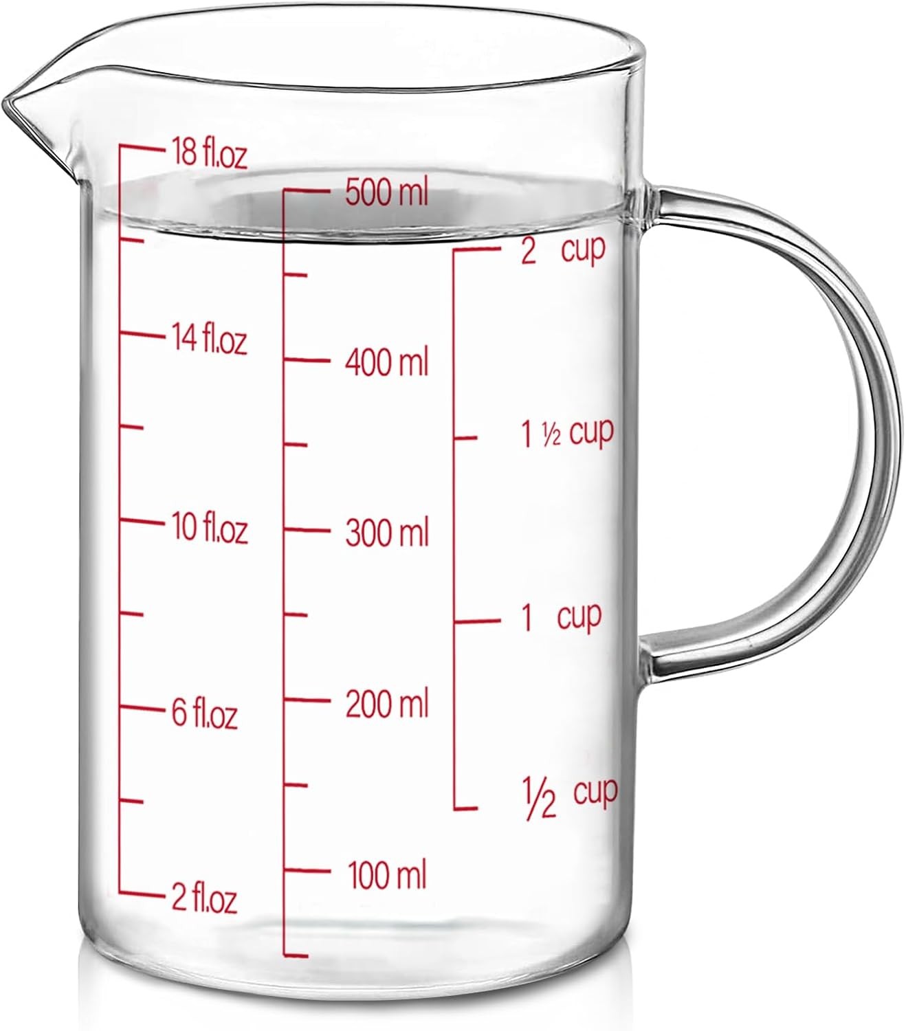 Glass Measuring Jug , Kitchen Lab Clear Easy to Read Measurements, Microwave Safe, Cook with Accuracy, Ergonomic Handle Design,500ml