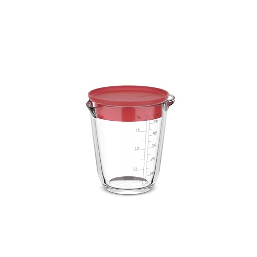 Mepal - Glass Measuring Jug with Lid Chef it - Easy-to-read engraved Scale - Microwave & Oven Safe (Without Lid) - Dishwasher Safe - 500 ml - Coral