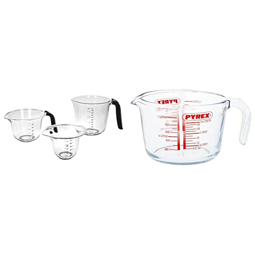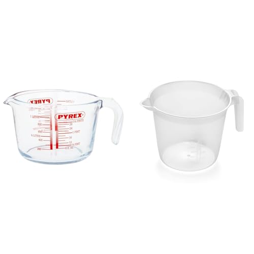 Pyrex Glass Measuring Jug, Transparent, 1 Litre & Addis 518007 Measuring and Mixing Jug with Handle, Transparent, 2 L