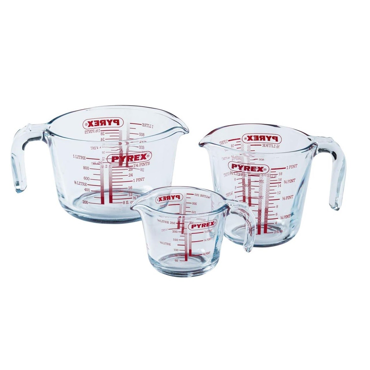 3 Pyrex Glass Measuring Jug Set 0.25L 0.5L & 1L Classic Kitchen Measurement Jug