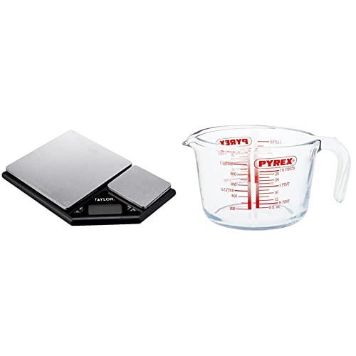 KitchenCraft Digital Kitchen Scale Dual Platform, Taylor Pro Professional Standard & Pyrex Glass Measuring Jug, Transparent, 1 Litre