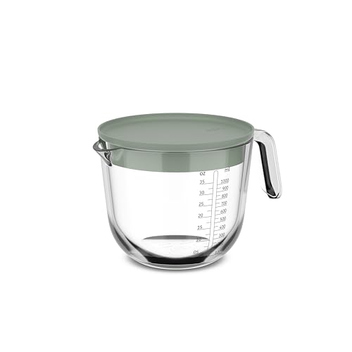 Mepal - Glass Measuring Jug with Lid Chef it - Easy-to-read engraved Scale - Microwave & Oven Safe (Without Lid) - Dishwasher Safe - 1000 ml - Nordic sage