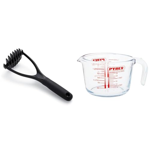 OXO Good Grips Nylon Potato Masher, Black & Pyrex Glass Measuring Jug, Transparent, 1 Litre