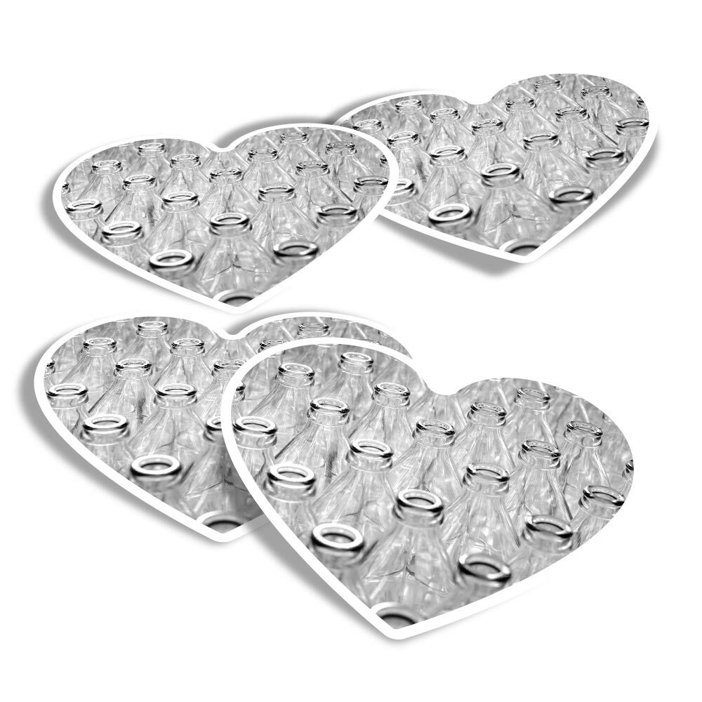 4x Heart Stickers - BW - Glass Drink Bottles Milk Delivery #37016