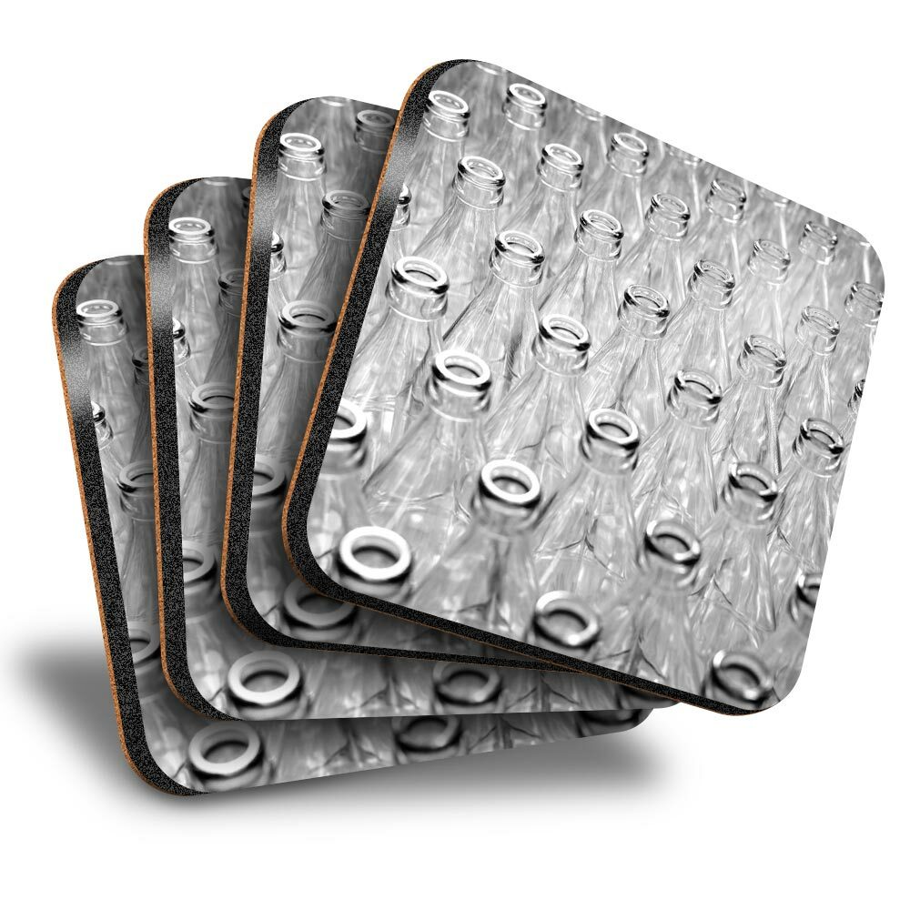 Set of 4 Square Coasters - BW - Glass Drink Bottles Milk Delivery #37016