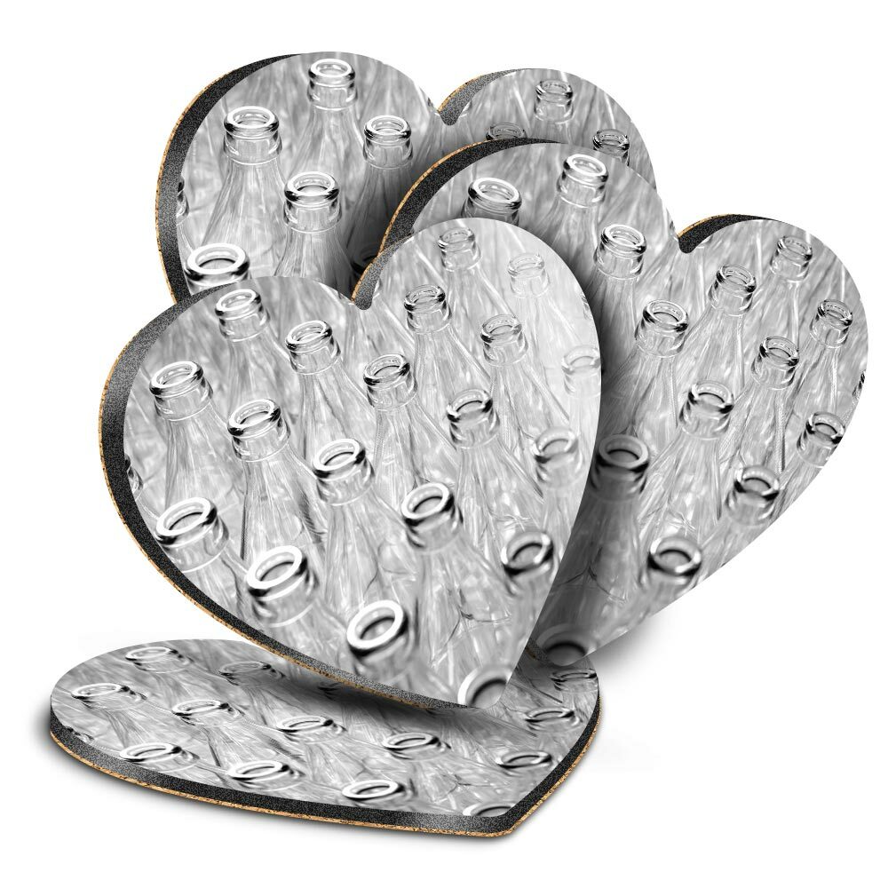 4x Heart MDF Coasters - BW - Glass Drink Bottles Milk Delivery #37016