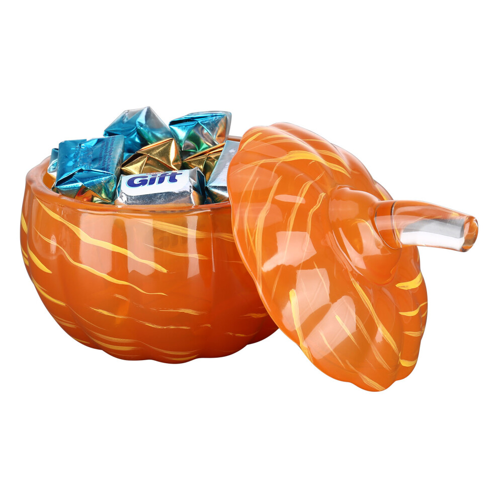 Decorative Glass Pumpkin Jar With Lid, Versatile Oven Safe Candy Dish For Halloween Parties, Multi Functional Non Sealed Jar In Orange And Blue