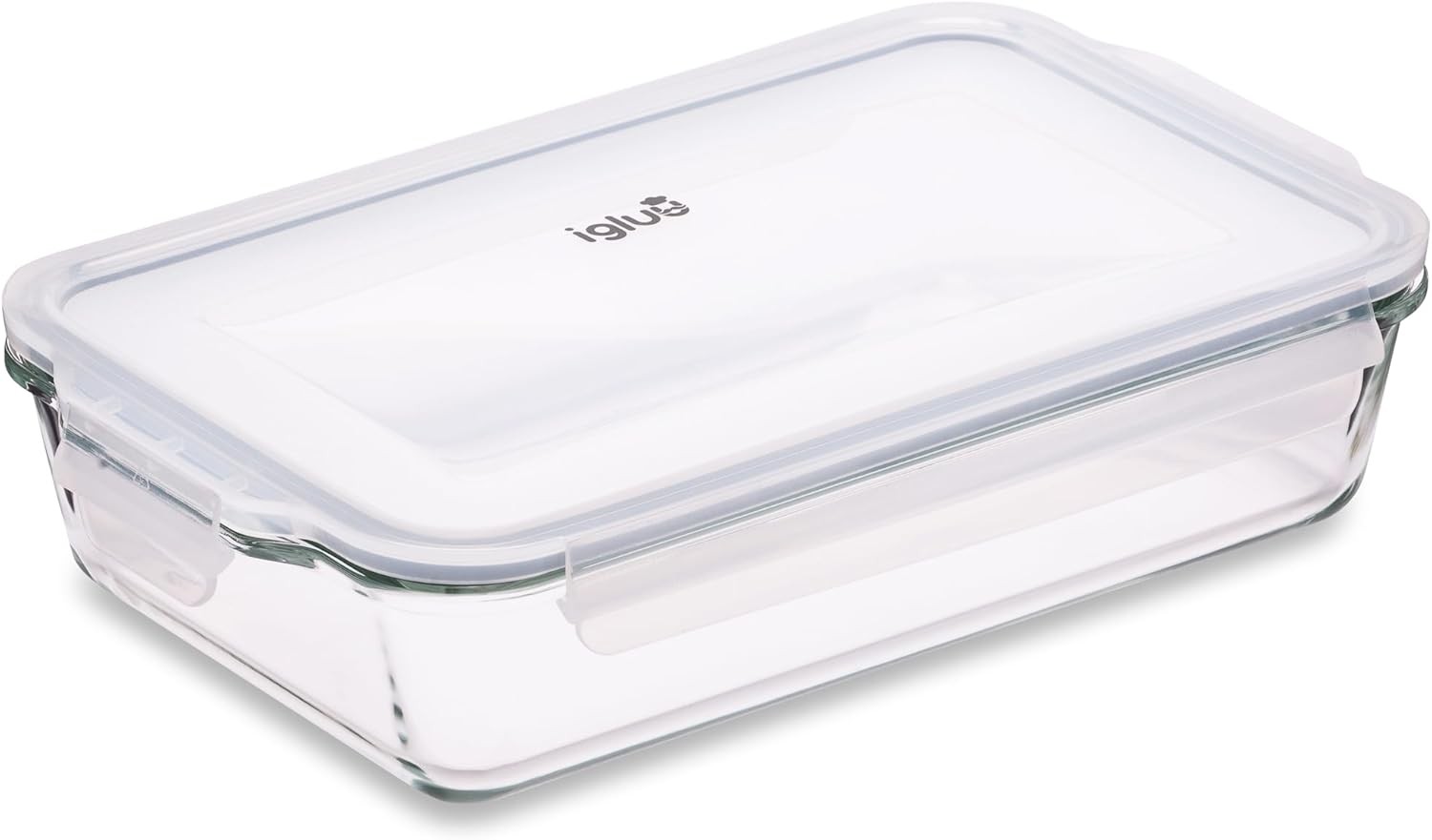 Igluu Meal Prep - Glass Lasagne Dish with Airtight Snap Lock Lid - Large Rectangular Oven-Safe Baking Dish - BPA-Free, Microwavable, Freezer