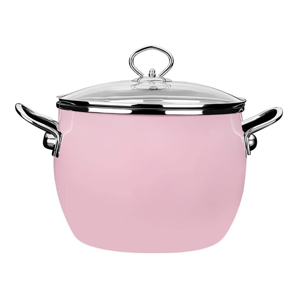 Round Enamel Casserole Dish with Glass Lid, Even Heat for Oven and Stovetop, 9x10 Inch
