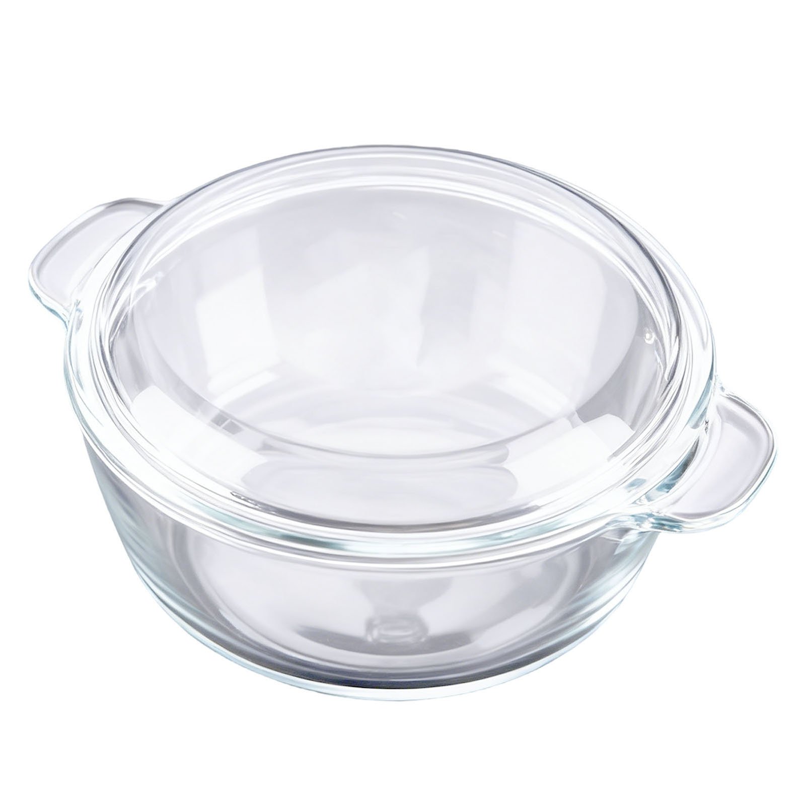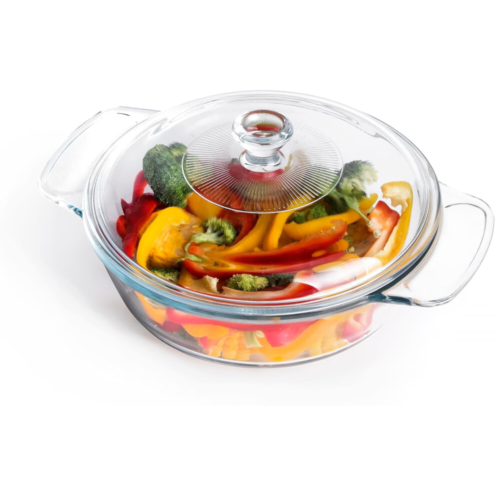 2L Round Glass Casserole Dish with Lid â Microwave, Oven, Freezer & Dishwasher Safe, Tempered, Easy-Grip, Compatible with Standard Racks