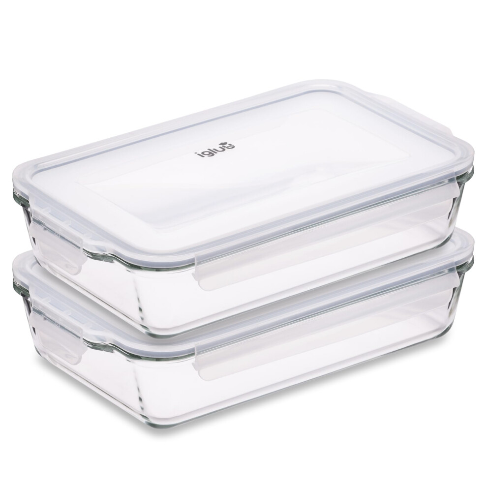 Igluu Meal Prep Glass Oven Dish with Airtight Lid 2.2L ? Set of 2 ? Borosilicate Lasagne Dish for Oven, Microwave, Freezer