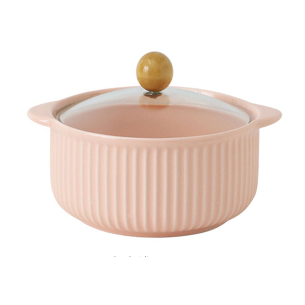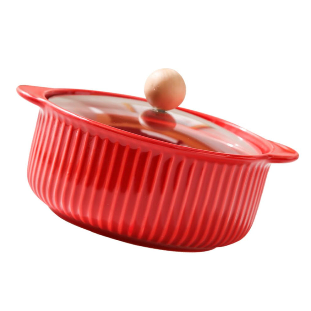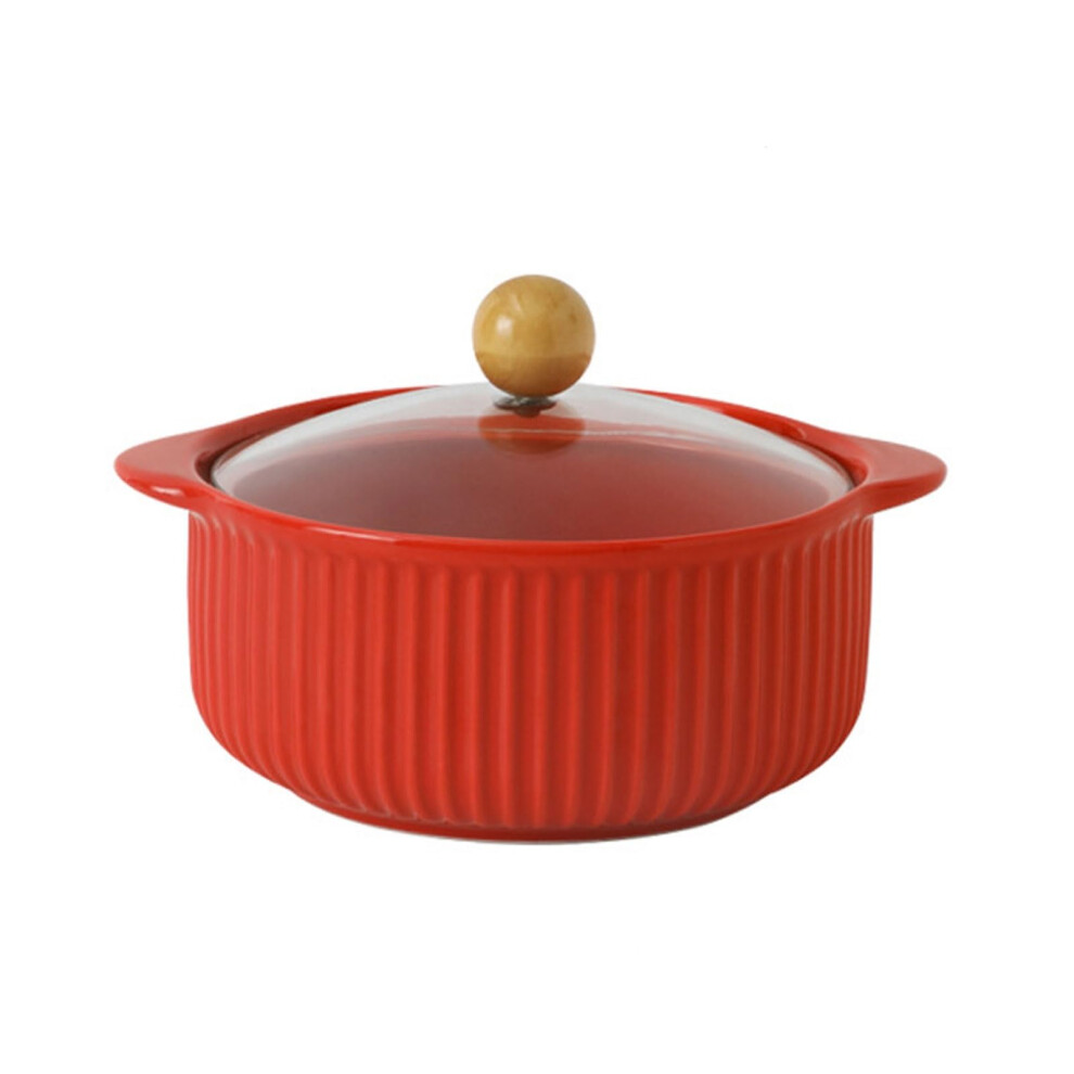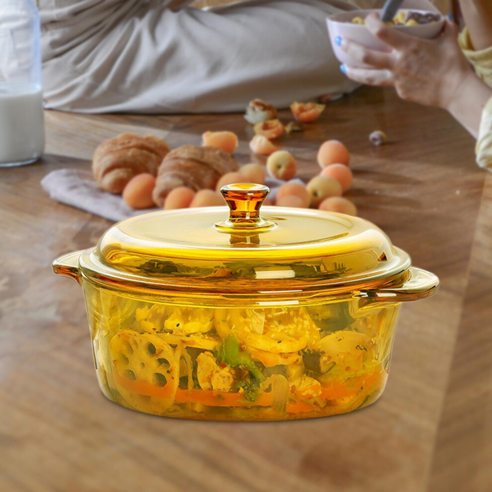 Covered Oven Bowl Glass Stew Pot Soup with Lid Casserole Dish Binaural