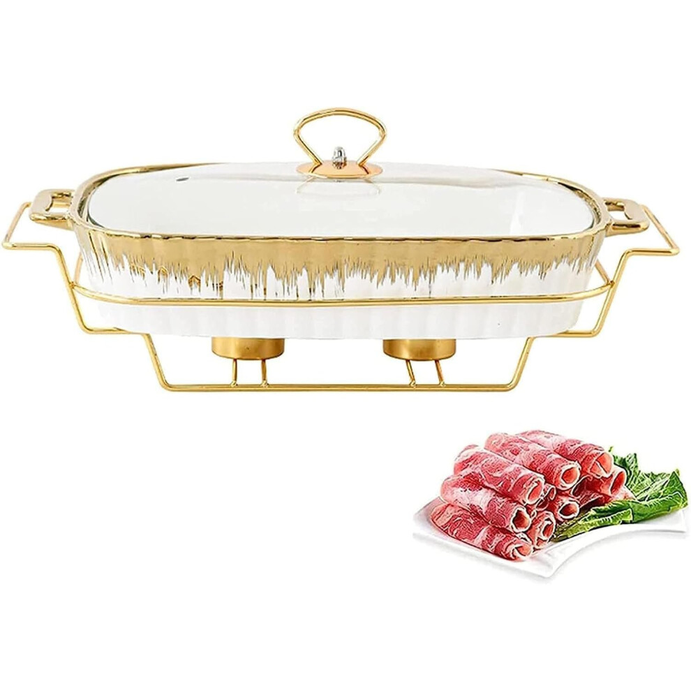 Buffet Chafing Dish Oven, Ceramic Chafing Dish Buffet Set with Transparent Glass Lid, Winter Food Warming for Catering, Party, Wedding, L Ref: 6328