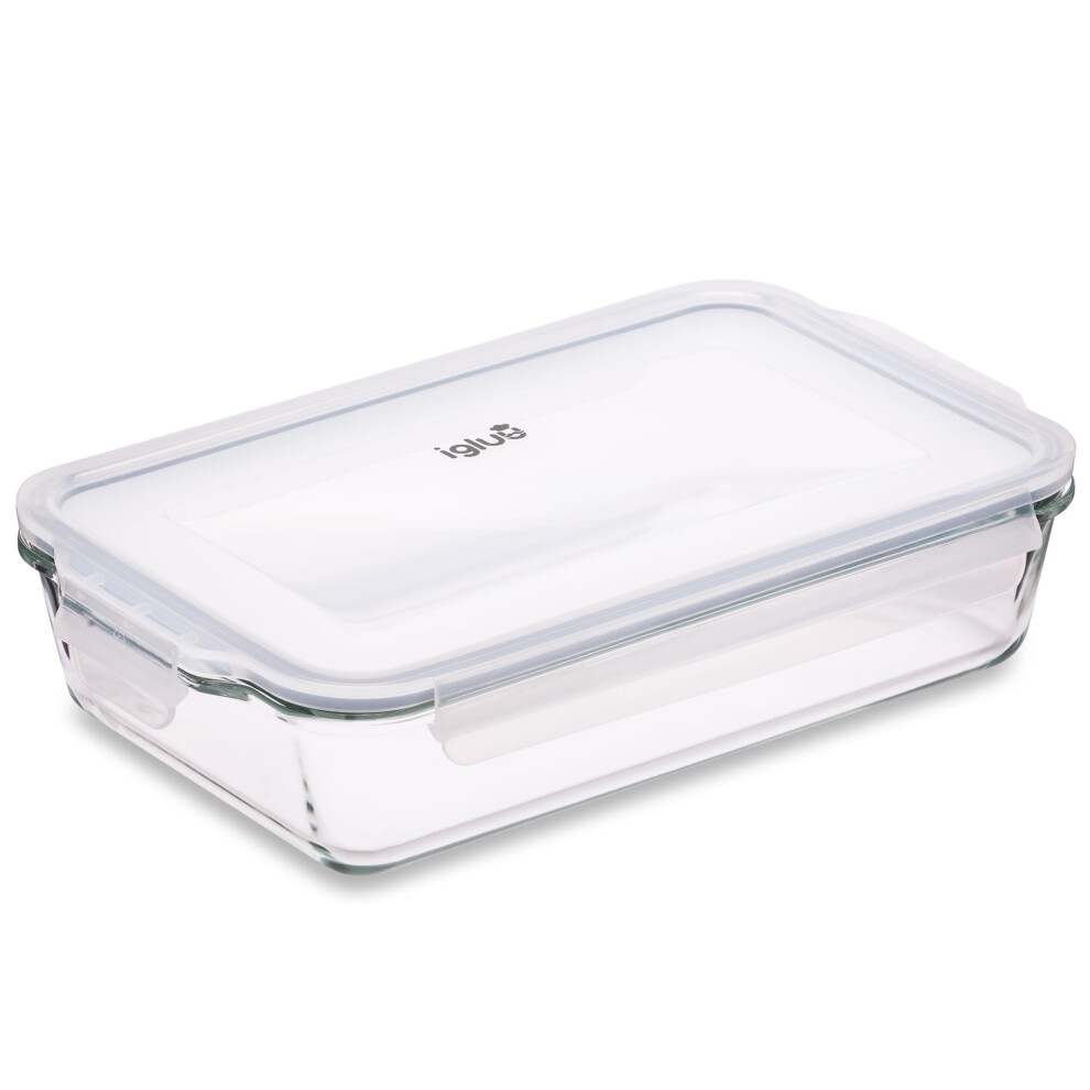 Igluu Meal Prep Glass Lasagne Dish with Lid – Airtight 2.2L Oven Microwave Freez
