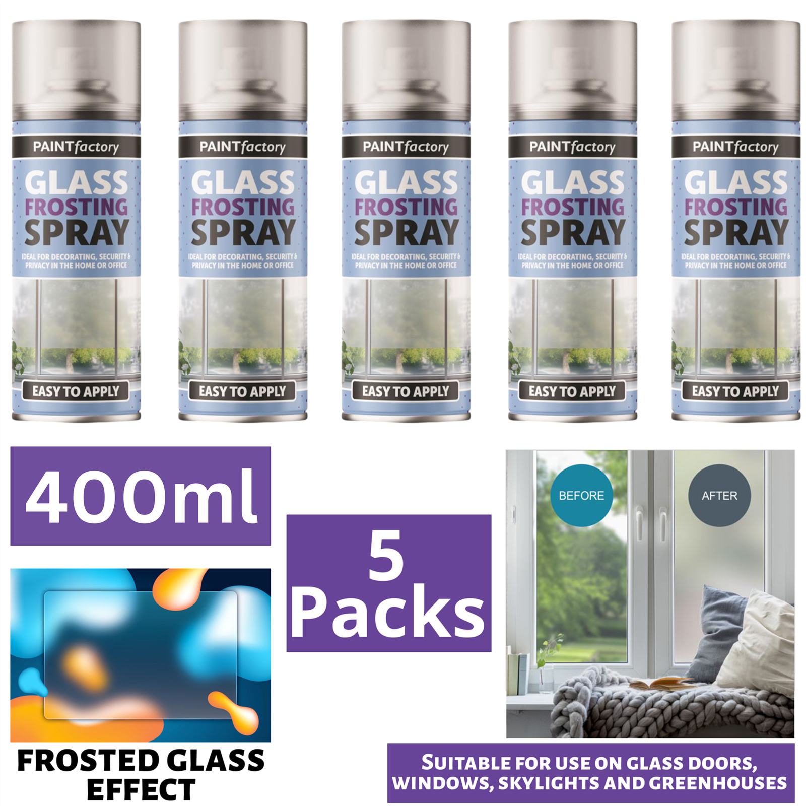 3 x 400ML WINDOW GLASS FROSTING SPRAY PAINT AEROSOL PRIVACY DECORATIVE FROSTED