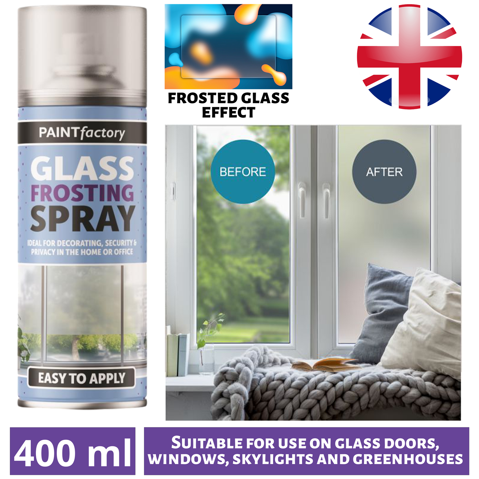 GLASS FROSTING SPRAY PAINT 400ML AEROSOL FOR WINDOW PRIVACY DECORATIVE FROSTED