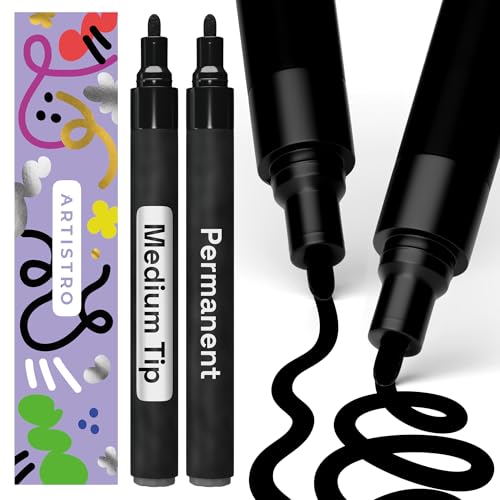 ARTISTRO Black Permanent Marker - Set of 2 Black Paint Pens, Medium Tip 3mm, Waterproof Quick Dry, Ideal for Rock Painting, Ceramic, Glass, Wood, Tire, Fabric & More