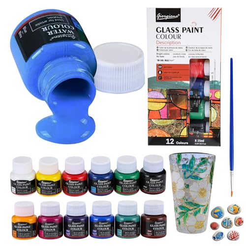 Glass Paints for Glass Painting, 12 Colours Glass Painting Kit with Glass Paint Pen, Non-Toxic Paint for Glass Ceramic, Strong Covering Power for Glass, Crystal, Window and Wine Bottles