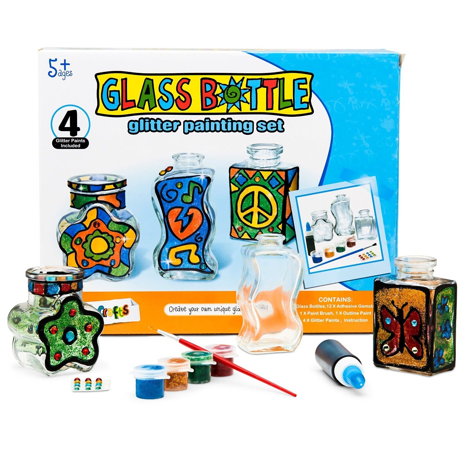 Glitter Glass Craft Set Bottle Art Painting Glass Bottle Glitter Painting Set