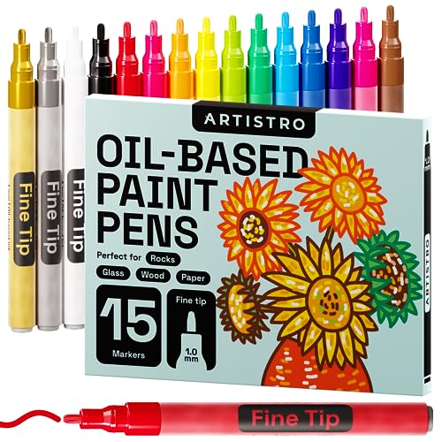 ARTISTRO Paint Pens for Rock Painting, Stone, Ceramic, Glass, Wood, Porcelain, Mugs, Metal, Fabric, Canvas. Set of 15 Quick Dry, Permanent, Waterproof and Oil Based Paint Markers Fine Tip