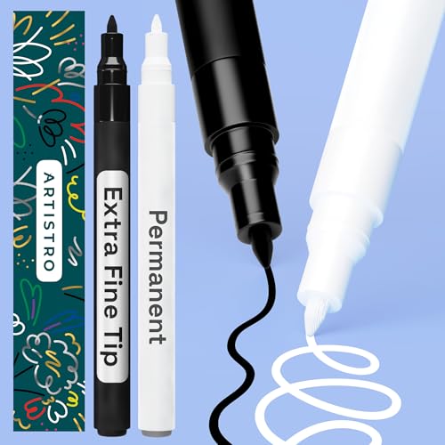 ARTISTRO Black & White Permanent Marker, Set of 2 Black & White Paint Pen,Oil Based Paint Markers Extra-Fine Tip 0.7mm Waterproof Paint Pens for Rock Painting, Ceramic, Glass, Wood, Fabric, Tire&More