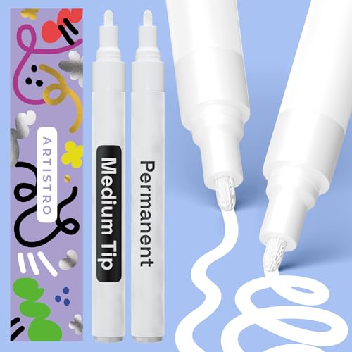 ARTISTRO White Permanent Marker - Set of 2 White Paint Pens, Medium Tip 3mm, Waterproof Quick Dry Markers for Rock Painting, Ceramic, Glass, Wood, Tire, Fabric & More