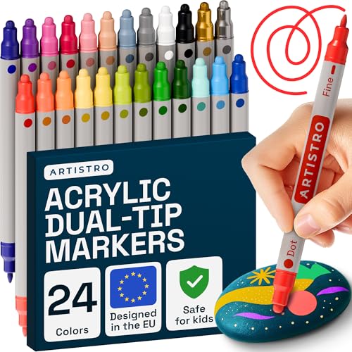 ARTISTRO Acrylic Paint Markers for Rock, Fabric, Wood, Glass, Craft - 24 Quick Dry Dual-Tip Paint Pens for Halloween Decorations - Pumpkin Painting Kit, Drawing Markers, Art Supplies