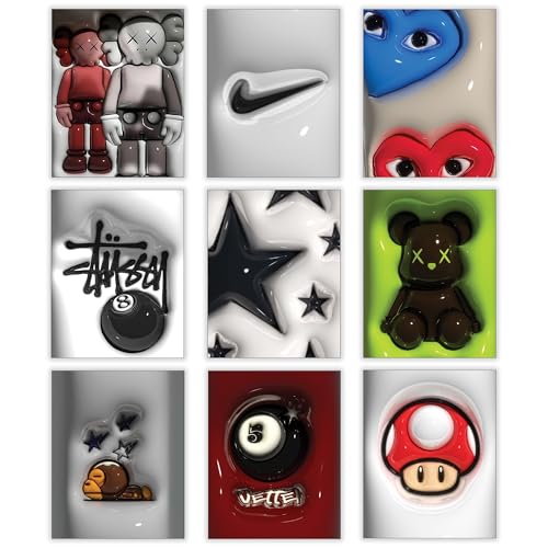 CREAARO Hypebeast Posters Trendy Wall Decor Sneakerhead Room Decor For Teen Boys Room Girl Wall Collage Art Prints Glass Effect Painting 9pcs Set 8x10 Inch