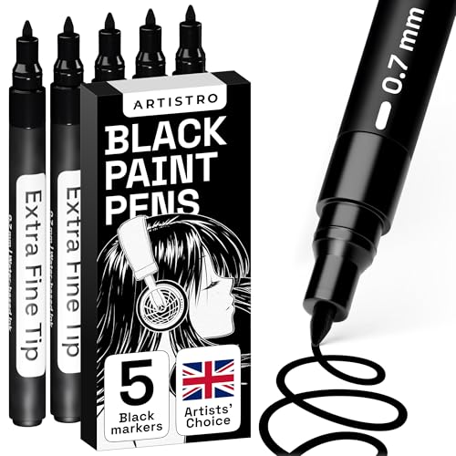ARTISTRO 5 Black Paint Pens set for Rock Painting, Stone, Ceramic, Glass, Wood, Tire, Fabric, Metal, Canvas. Calligraphy Pen, Black Markers for Acrylic Painting Extra Fine Point Tip