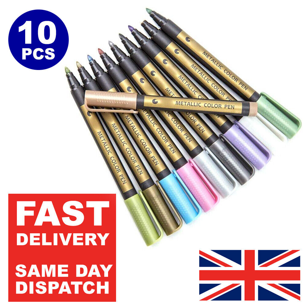 10PC METALLIC PAINT PEN MARKER GLASS PAINTING CERAMIC PORCELAIN ROCK WOOD KIT UK