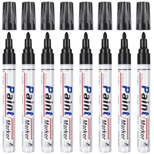 STANBLUE Black Paint Pens Paint Markers Set of 8, Oil-Based Quick Dry and Permanent, Waterproof Paint Marker Pen for Rocks Painting, Wood, Fabric, Plastic, Canvas, Glass, Mugs, Metal, Cardboard