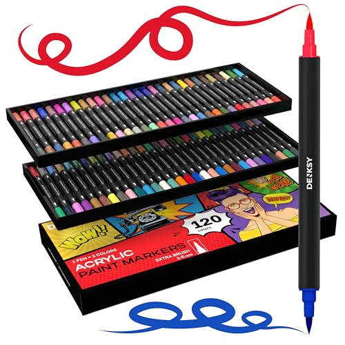 Acrylic paint pens create art – Dual Brush Tip Acrylic Markers Set, 120 Vibrant Colors, 60 Double-Ended Pens with Dual Brush Tips, Waterproof Quick-Drying Ink for Rock Painting, Glass, Wood, Fabric