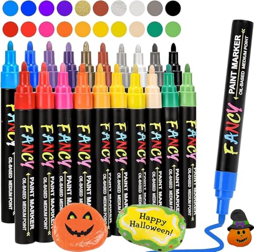 RATEL Paint Pens Paint Markers for Rock Painting, Stone, Ceramic, Glass, Wood, Porcelain, Mugs, Metal, Fabric, Canvas, DIY Craft Set of 20 Quick Dry, Permanent Waterproof Oil Based Paint Markers