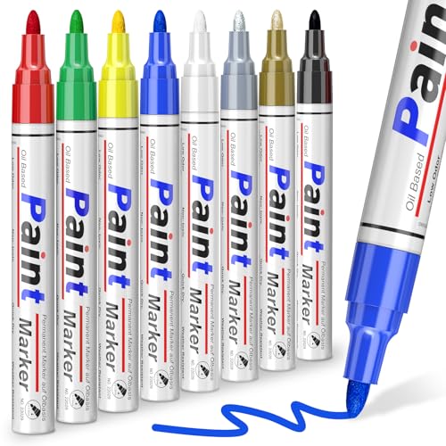 ANYUKE 8 Colors Paint Pens, Strong Coverage Paint Markers, Oil-Based Waterproof Paint Permanent Marker Pens for Rock painting, Metallic, Plastic, Fabric, Canvas, Wood, Glass, DIY Craft Paint Set